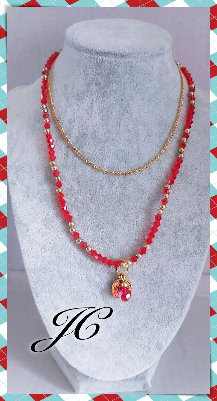 Rode facetkralen ketting met hanger