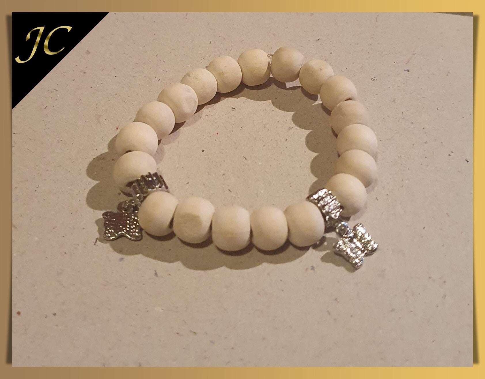 Naturel houtkralen met bedels (niet verzilverd)